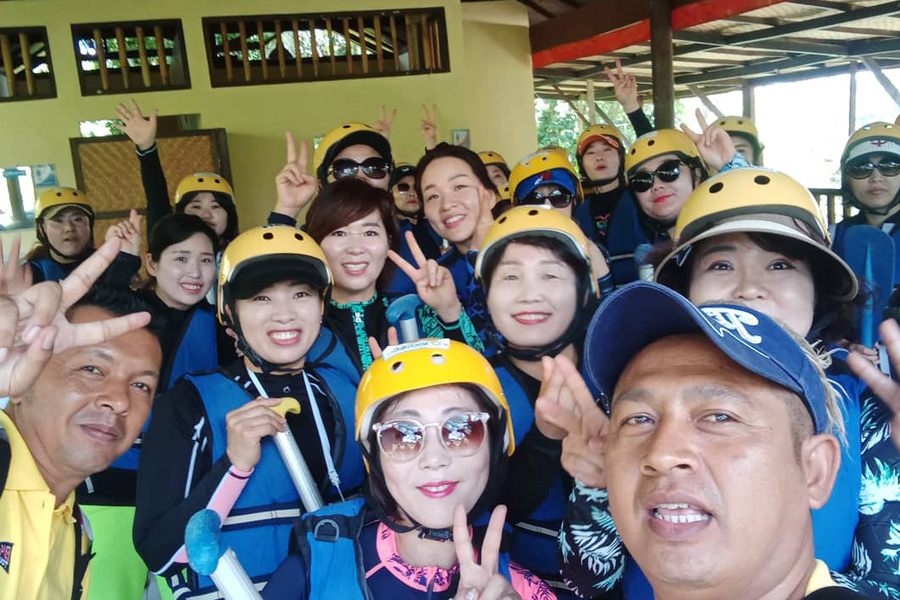 호텔 로비에서 차량기사 또는 가이드 미팅